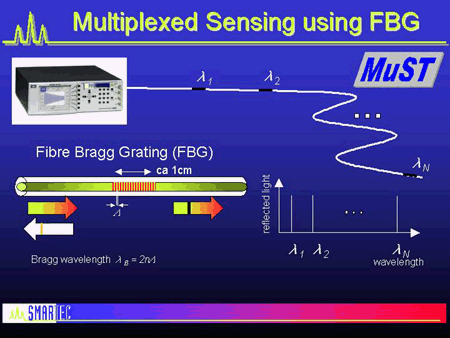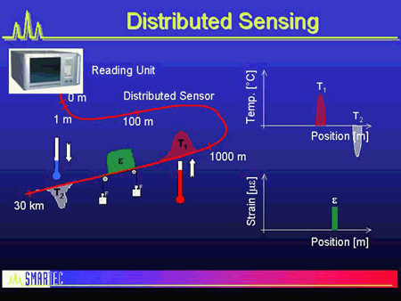 多路復用和分布式傳感器的獨特之處在于它們沿著單根光纜在大量點提供測量:非常適合最小化電纜布線和電纜重量,或用于監控管道,水壩等擴展結構。