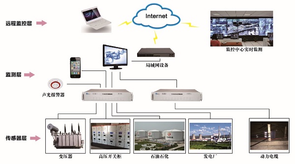 • 溫度傳感器和傳輸光纖全絕緣、耐高壓、防爬電、阻燃